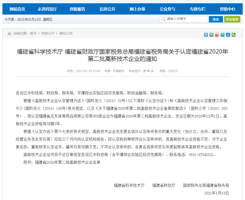 日前,福建省科學技術廳 福建省財政廳 國家稅務總局福建省稅務局公布《關于認定福建省2020年第二批高新技術企業(yè)的通知》,認定福建省955家企業(yè)為福建省2020年第二批高新技術企業(yè),其中 福建巨邦機械有限公司 入選其中。
