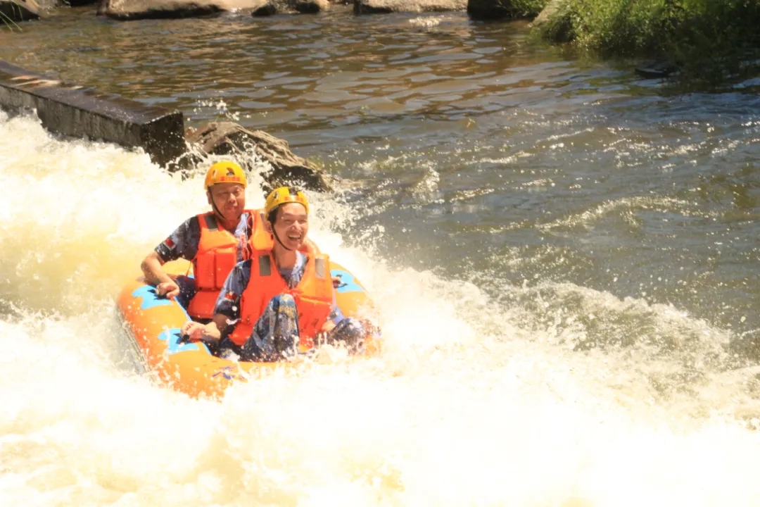經(jīng)歷風(fēng)雨更能體會(huì)甘甜。在一番“歷險(xiǎn)”后,巨邦人回歸大自然——聽(tīng)自高山而泄匯聚而成的溪水在蜿蜒的漂流道內(nèi)一路歡唱;看綠意盎然,溪水清澈。兩人一組駕馭皮艇自由小舟,感受跌宕起伏的自然河道,馳騁于優(yōu)美山澗,換得一身自然與舒暢,在不經(jīng)意間相視而笑,為這一場(chǎng)“團(tuán)隊(duì)作戰(zhàn)”的苦盡甘來(lái),為“巨邦成長(zhǎng)記”的默契合作。