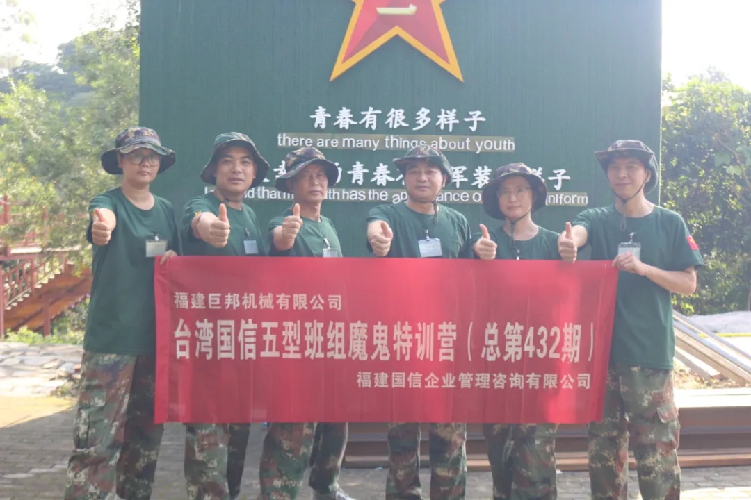 強(qiáng)企必先強(qiáng)人。為了提升管理者與企業(yè)骨干管理能力,給予員工更多學(xué)習(xí)與成長的機(jī)會,打造斗志昂揚、高效合作的精英團(tuán)隊,7月30日-8月1日,巨邦機(jī)械組織公司管理干部及儲備優(yōu)秀員工參加了為期三天兩夜的“臺灣國信企管第432期五型班組魔鬼特訓(xùn)營”拓展訓(xùn)練。